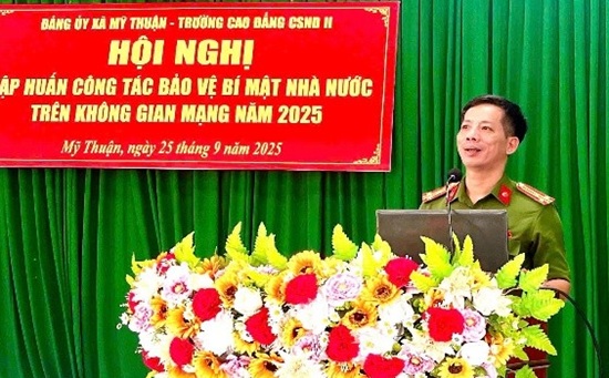 Ngày 25/9/2025, Khoa Ngoại ngữ - Tin học, Trường Cao đẳng Cảnh sát nhân dân II phối hợp với Công an xã Mỹ Thuận, tỉnh Vĩnh Long tổ chức Hội nghị tập huấn công tác bảo vệ bí mật nhà nước trên không gian mạng tại xã Mỹ Thuận.