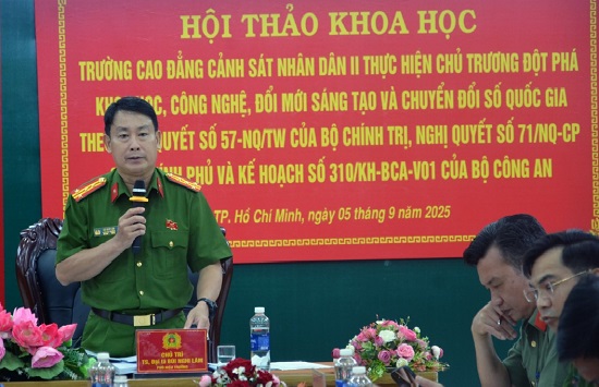 Ngày 06/9/2025, Trường Cao đẳng CSND II tổ chức Hội thảo khoa học: “Trường Cao đẳng Cảnh sát nhân dân II với việc thực hiện chủ trương đột phá về khoa học, công nghệ, đổi mới sáng tạo và chuyển đổi số quốc gia theo Nghị quyết số 57-NQ/TW ngày 22/12/2024 của Bộ Chính trị, Nghị quyết số 71/NQ-CP ngày 01/4/2025 của Chính phủ và Kế hoạch số 310/KH-BCA-V01 của Bộ Công an”.