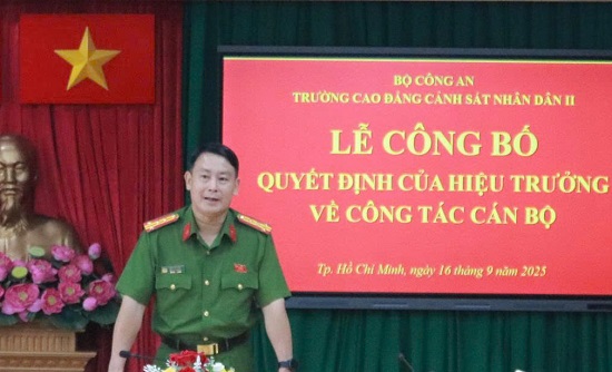 Ngày 16/9/2025, Trường Cao đẳng Cảnh sát nhân dân II tổ chức công bố Quyết định bổ nhiệm lại có thời hạn chức vụ Trưởng khoa Luật cho đồng chí Thượng tá Nguyễn Đức Thảo. Dự buổi lễ công bố quyết định có đồng chí Đại tá Bùi Nghi Lâm - Phó Bí thư Đảng ủy, Phó Hiệu trưởng Nhà trường; lãnh đạo, giáo viên Khoa Luật và đại diện các đơn vị chức năng.