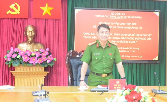Ngày 07/10/2025, Trường Cao đẳng Cảnh sát nhân dân II tổ chức họp Hội đồng tư vấn giao trực tiếp đề tài khoa học và công nghệ cấp cơ sở: “Công tác phát hiện, thu thập, đánh giá, sử dụng dấu vết trong điều tra các vụ tai nạn giao thông đường bộ của công an Thành phố Hồ Chí Minh”, do đồng chí Thượng tá, TS Nguyễn Tấn Thương - Trưởng Khoa Kỹ thuật hình sự làm chủ nhiệm.