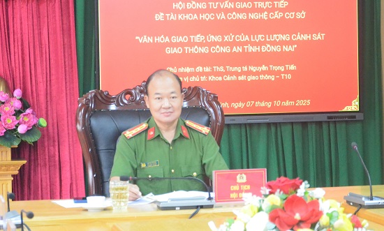 HỌP HỘI ĐỒNG TƯ VẤN GIAO TRỰC TIẾP ĐỀ TÀI KHOA HỌC VÀ CÔNG NGHỆ CẤP CƠ SỞ “VĂN HOÁ GIAO TIẾP, ỨNG XỬ CỦA LỰC LƯỢNG CẢNH SÁT GIAO THÔNG TỈNH ĐỒNG NAI”