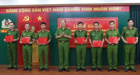 Đồng chí Đại tá Huỳnh Văn Em - Phó Hiệu trưởng trao Chứng chỉ và Giấy khen cho học viên