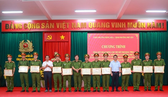 Tham dự buổi lễ tổng kết, về phía Nhà trường có đồng chí Thượng tá Lê Nguyễn Quốc Việt - Phó Hiệu trưởng; đại diện lãnh đạo các Khoa, Phòng và đặc biệt là 329 cán bộ, giáo viên, học viên, công nhân viên Nhà trường trực tiếp tham gia hỗ trợ. Về phía địa phương, có đồng chí Lê Văn Thìn - Bí thư Đảng uỷ phường Đông Hoà; đồng chí Huỳnh Mỹ Phong - Chủ tịch UBND phường Đông Hoà; đồng chí Nguyễn Thái Thịnh - Phó Chủ tịch UBND phường Phú Yên; đại diện Công an tỉnh Đắk Lắk; đại diện Công an và các ban, ngành, tổ chức đoàn thể tại phường Đông Hoà, phường Phú Yên.