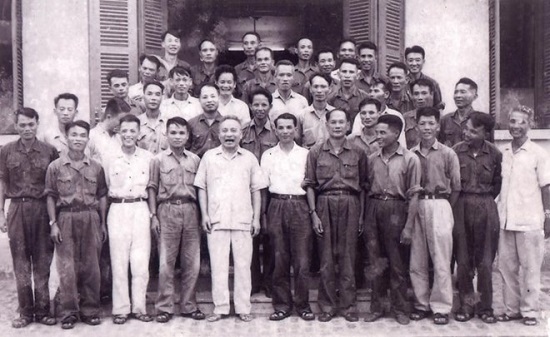 Bộ trưởng Trần Quốc Hoàn chụp ảnh kỷ niệm với cán bộ, giáo viên Trường Sĩ quan An ninh (nay là Học viện ANND) năm 1974