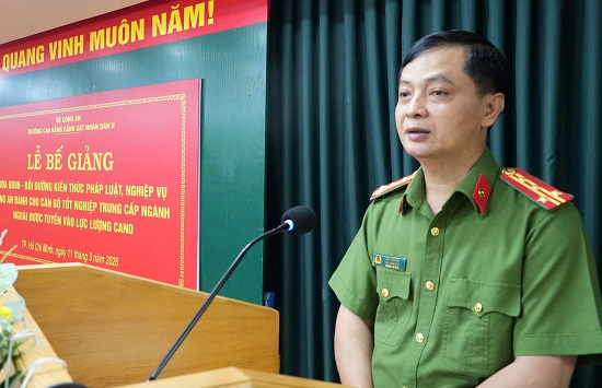 Ngày 11/03/2026, Trường Cao đẳng Cảnh sát nhân dân II tổ chức Lễ bế giảng Lớp BD06 - Bồi dưỡng kiến thức pháp luật, nghiệp vụ Công an cho cán bộ tốt nghiệp trung cấp ngoài ngành được tuyển vào lực lượng CAND. Đến dự và chủ trì buổi lễ có đồng chí Đại tá Bùi Tấn Ân - Phó Hiệu trưởng, đại diện lãnh đạo các đơn vị trực thuộc và toàn thể học viên lớp học.