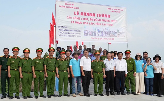Ngày 13/3/2026, Đoàn Thanh niên Trường Cao đẳng Cảnh sát nhân dân II đã phối hợp cùng Hội Từ thiện Vòng Tay Việt Nam, Đảng uỷ - UBND và Công an xã Nhơn Hòa Lập, tỉnh Tây Ninh tổ chức Lễ khánh thành cầu giao thông nông thôn bắc qua kênh 1000 Đông Phụng Thớt, ấp Kênh Chà. Đây là công trình hưởng ứng chương trình Tháng Ba Biên giới “Biên cương Tổ quốc tôi”, thi đua lập thành tích chào mừng bầu cử Đại biểu Quốc hội khóa XVI và Đại biểu Hội đồng nhân dân các cấp nhiệm kỳ 2026 - 2031, hướng tới kỷ niệm 95 năm Ngày thành lập Đoàn TNCS Hồ Chí Minh và 70 năm truyền thống Đoàn Thanh niên Bộ Công an.