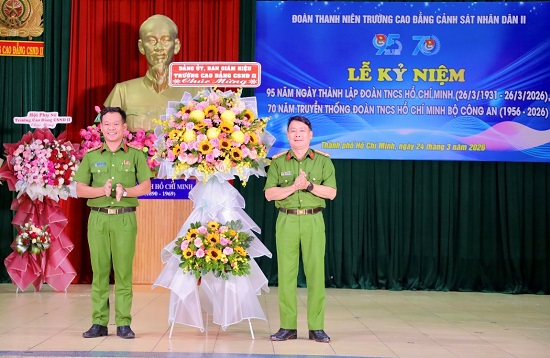 Hòa trong không khí thi đua sôi nổi của tuổi trẻ cả nước hướng tới kỷ niệm 95 năm Ngày thành lập Đoàn TNCS Hồ Chí Minh (26/3/1931 - 26/3/2026) và 70 năm truyền thống Đoàn TNCS Hồ Chí Minh Bộ Công an (1956 - 2026), ngày 24/3/2026, Đoàn Thanh niên Trường Cao đẳng Cảnh sát nhân dân II đã long trọng tổ chức Lễ kỷ niệm nhằm ôn lại truyền thống vẻ vang, khẳng định vai trò, vị trí của tổ chức Đoàn trong sự nghiệp xây dựng và bảo vệ Tổ quốc.